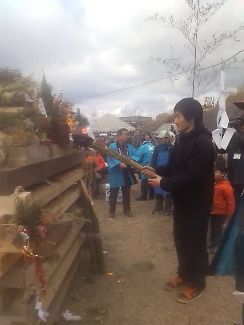 最後に年男ということで、ポチが祭りのメインのお焚きをすることになって、聖火ランナーみたいなことしてました(笑)